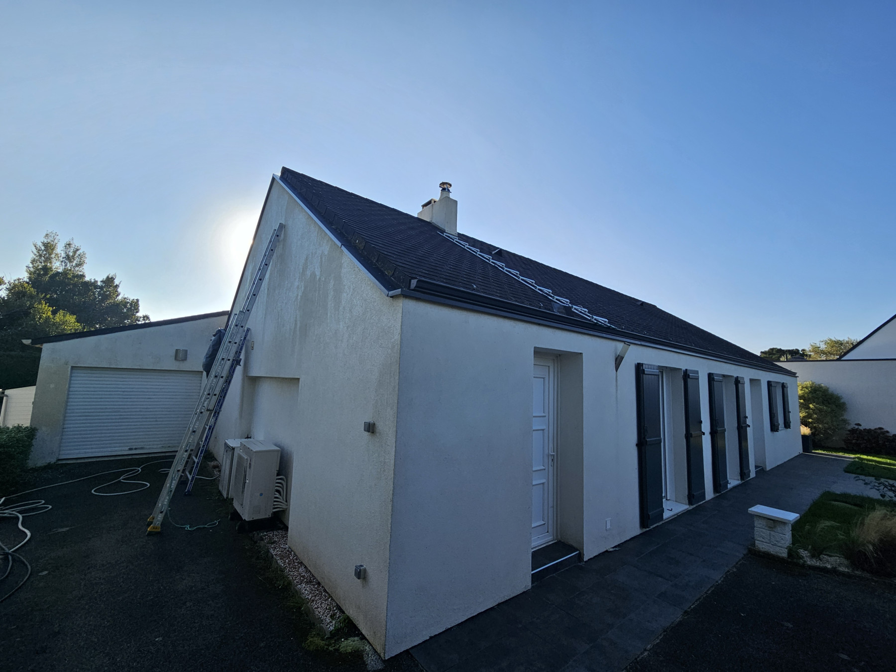 Lavage haute pression et pulvérisation d'un antimousse sur la façade et toiture